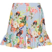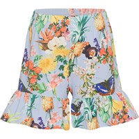 Almira är ett par shorts med breda volanger i botten. Shortsen har gummiband i midjan och tropiska frukter, blommor och fjärilar.