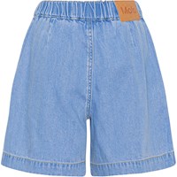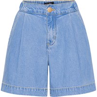 Ljusblå shorts i bomullschambray. Shortsen stängs med knapp och dragkedjaoch har gummiband baktill. Shortsen har sidofickor, hög midja och vida ben med två djupa veck framtill och snitt baktill som skapar en skön och luftig passform.