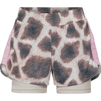 Omari är ett par tvådelade träningsshorts, där yttershortsen har ett fint giraffmönster med rosa band i sidorna, medan innershortsen är beige. Omari säkrar den helt rätta komforten och flexibiliteten, och ser till att där inte är något hinder för rörlighet. Dessa shorts är en del av Molo´s sportkollektion, som är med och binder samman mode och sport. Kombinera Omari med en av Molo´s toppar för en komplett sportig look. Molo´s sportkollektion är framtagen med en unik high-performance teknologi som heter HeiQ Smart Temp, som understöttar kroppens naturliga kylfunktion. Kylfunktionen aktiveras när du är varm och svettig och deaktiveras när kroppen är nedkyld. HeiQ Smart Temp säkrar optimal komfort och prestanda. Testat oberoende som säkerhet för huden.