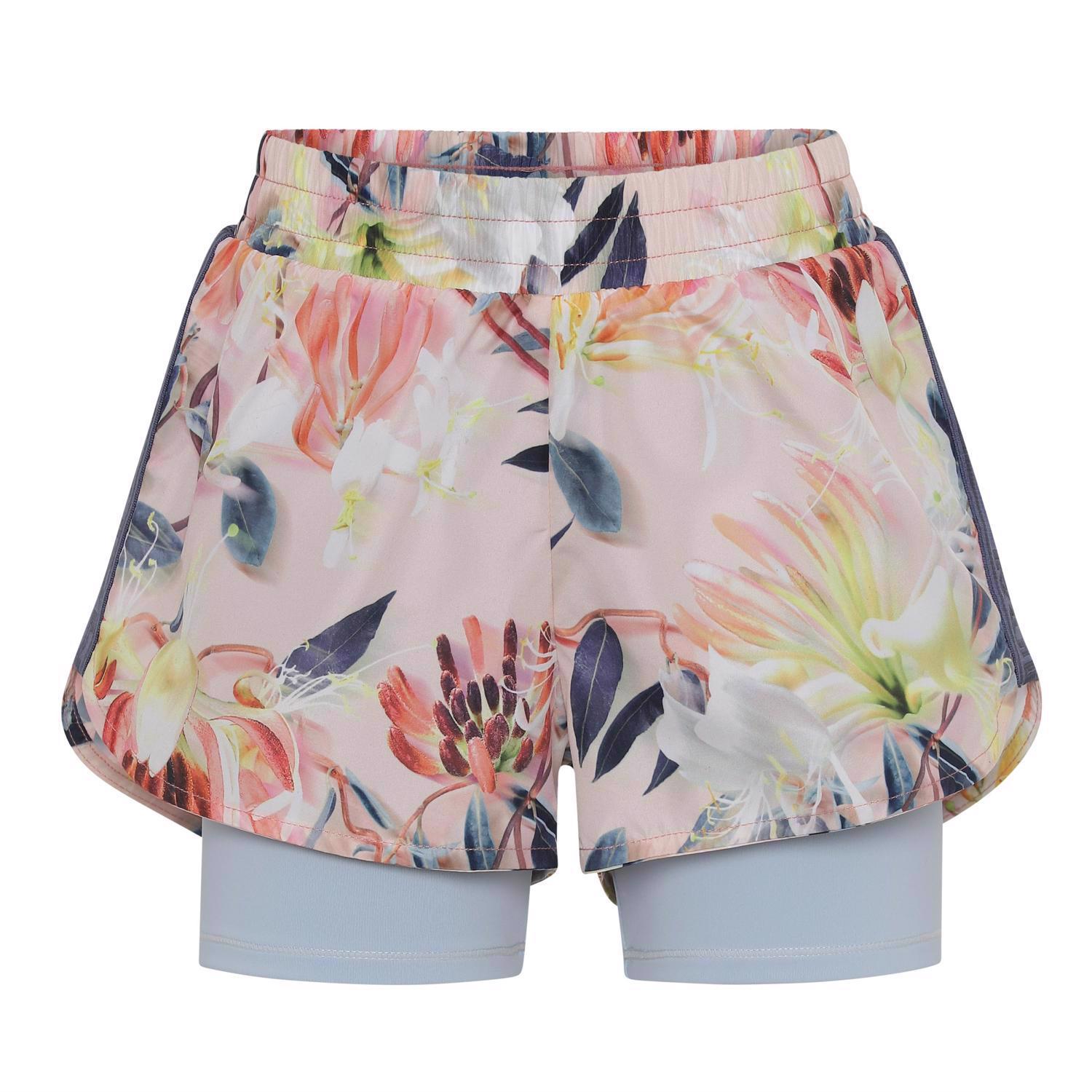 Omari är ett par tvådelade träningsshorts där yttershortsen har ett finnt blommigt mönster, medan de inre shortsen är ljusblå. Omari säkrar den helt rätta komforten och flexibiliteten och ser till att du kan röra dig fritt och obehindrat. Dessa shorts är en del av Molo´s sportkollektion som binder ihop mode och sport. Kombinera Omari med en av Molo´s toppar för en komplett sportig look. Molo´s sportkollektion är tillverkad med en unik high-performance teknologi kallad HeiQ Smart Temp, som stödjer kroppens naturliga nerkylning. Kylfunktionen aktiveras när du är varm och svettig och deaktiveras när kroppen är nerkyld. HeiQ Smart Temp säkrar optimal komfort och prestanda. Testat oberoende som säkerhet för huden.