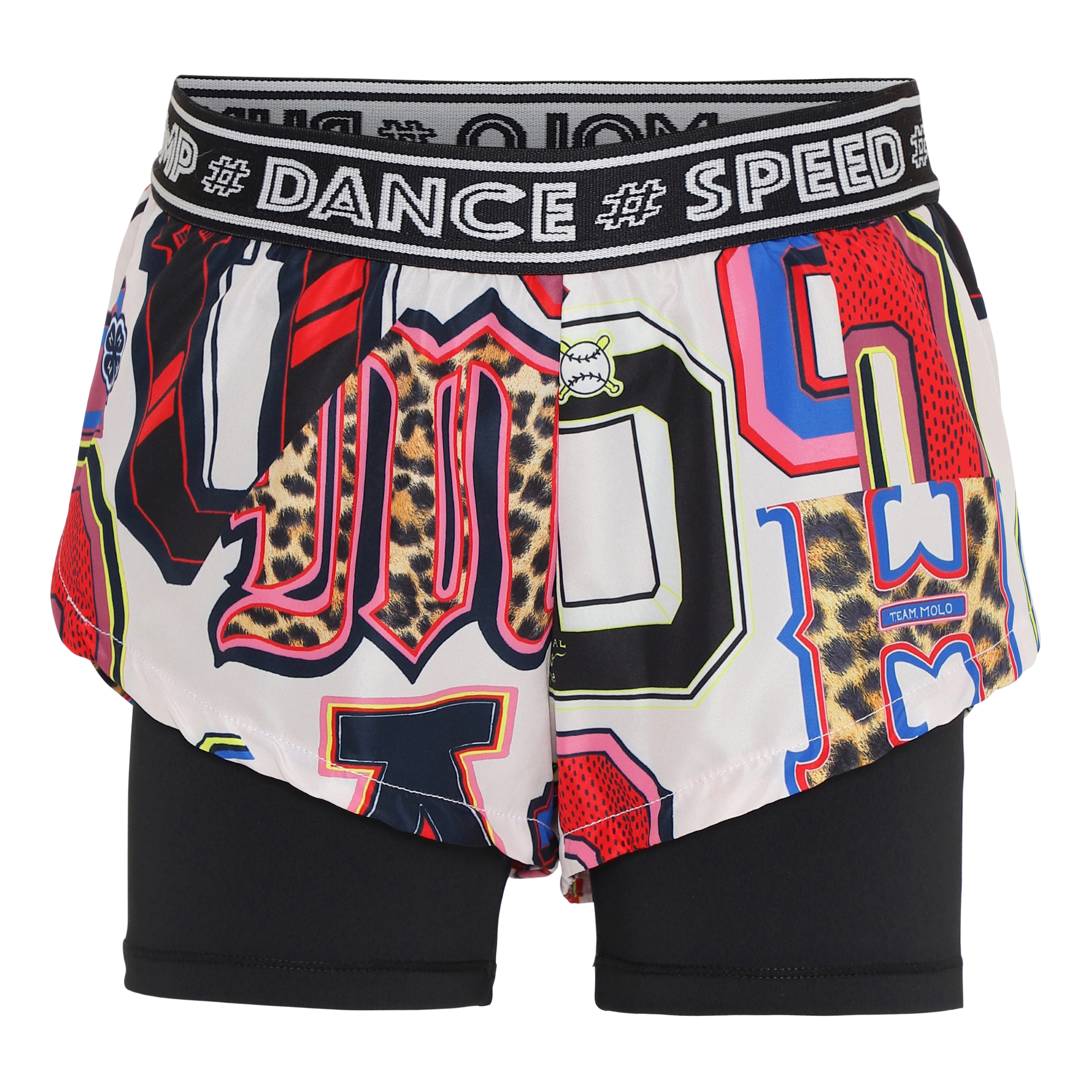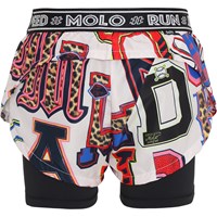 Omari är två-delade sportsshorts, med yttershorts med tryck av grafiska bokstäver och svarta inneshorts. Omari garanterar en skön passform och flexibilitet och ger en bra rörelsefrihet. Dessa shorts är en del av Molo's nya sportskollektion, som kombinerar mode och sport. Kombinera Omari med en av Molo's sportstoppar för en komplett sportig look. Molo’s sportskollektion är tillverkad med en unik högpresterande teknologi som heter HeiQ Smart Temp, som stöder kroppens naturliga avkylning. Kylfunktionen aktiveras när du är varm och svettig. Kylfunktionen inaktiveras när kroppen är avkyld. HeiQ Smart Temp garanterar optimal komfort och prestanda. Testad oberoende som säkert för huden.