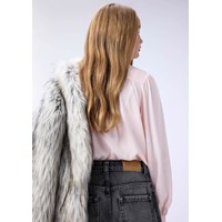 Rosa viskosskjorta med knappstängning framtill och på ärmarna samt vackra paneler runt kragen. Skjortan har gott om veck både på kroppen och ärmarna, vilket skapar en fin drapering.