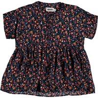 Rania är en små blommig blus med vidd, som faller snyggt. Blusen har knappknäppning i halsen.