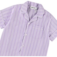 Vit och lila randig t-shirt i ekologisk bomull. Tröjan har en lös passform, en knappkrage, en bröstficka och upprullade ärmar.