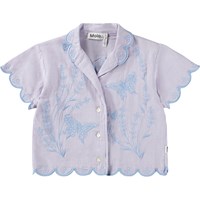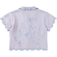 Lila skjorta i ekologisk bomull. Skjortan har korta ärmar, vågiga kanter och broderikonst.