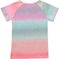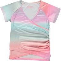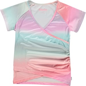 Oaklee är en omlott t-shirt med pastellfärgat regnbågsmönster, som kan användas både till sport och till vardag. T-shirten har omlotteffekt och korta ärmar. Toppen är en del av Molo´s sportkollektion, som är med och binder samman mode och sport. Toppen är skön att ha på och tillverkad i tekniska material, vilket gör att den kan användas både när intensiteten är hög och när man bara vill ta det lugnt. Molo´s sportkollektion är framtagen med en unik high-performance teknologi som heter HeiQ Smart Temp, som understöttar kroppens naturliga kylfunktion. Kylfunktionen aktiveras när du är varm och svettig och deaktiveras när kroppen är nedkyld. HeiQ Smart Temp säkrar optimal komfort och prestanda. Testat oberoende som säkerhet för huden.