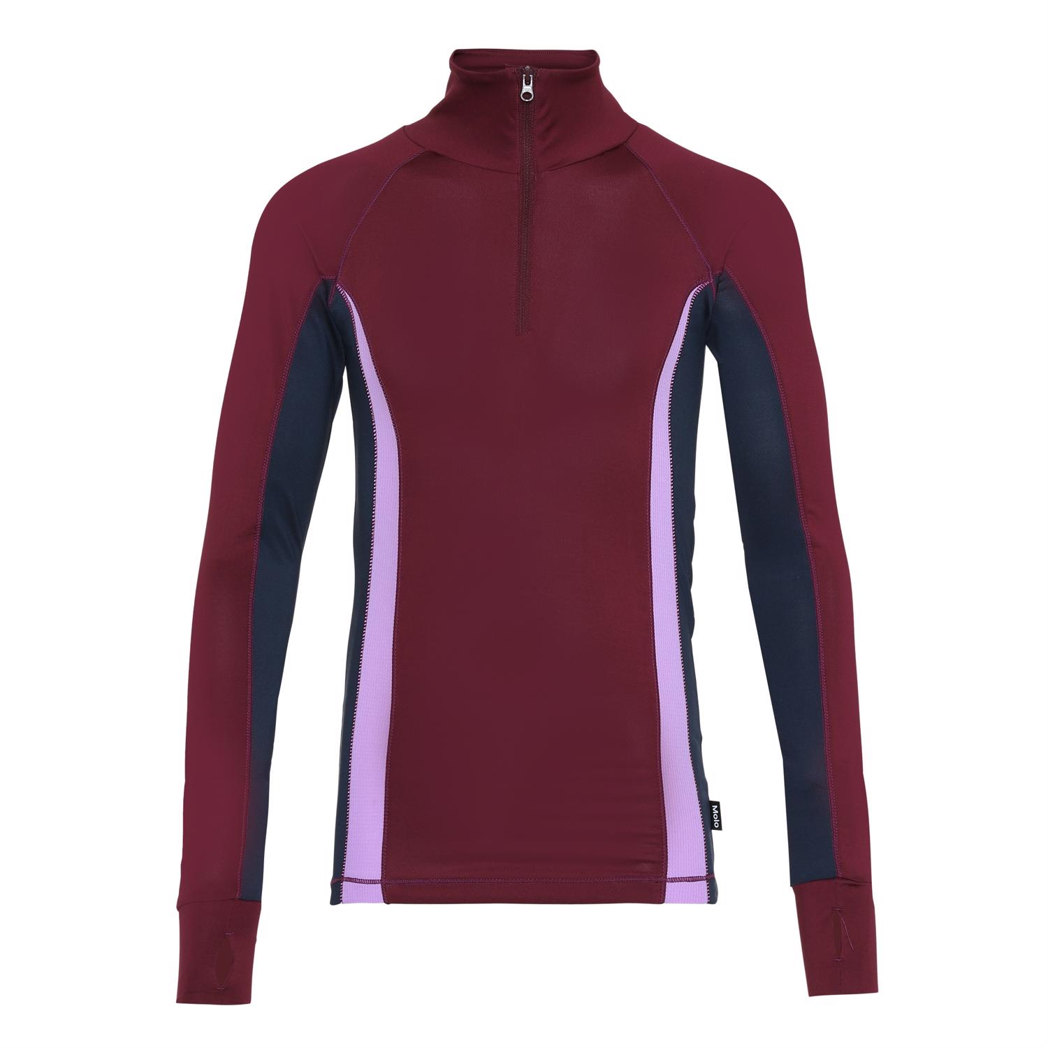 Oana är en tight sporttröja i svarta färgblock. Tröjan har långa ärmar och hög hals med blixtlås. Oana är en del av Molos sportkollektion som har i syfte att föra samman mode och sport. Toppen är komfortabel och är gjord av tekniska material, som gör att den kan användas både när intensitet är hög eller när det bara ska slappas. Molos sportkollektion är tillverkad med en unik högpresterande teknik som heter HeiQ Smart Temp, som stöder kroppens naturliga kylning. Kylfunktionen aktiveras när du är varm och svettig. Kylfunktionen inaktiveras när kroppen har svalnat. HeiQ Smart Temp garanterar optimal komfort och prestanda.