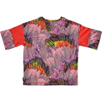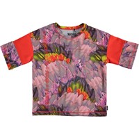 Odessa är en blommig t-shirt med en skön och vid passform. T-shirten har en bred blå rand på varje ärm. T-shirten är en del av Molo's nya sportskollektion, som bidrar till att knyta mode och sport närmare varandra. T-shirten är skön och är gjord av tekniska material, vilket innebär att den kan användas både när intensiteten är hög eller när man ska slappna av. Molo’s sportkollektion är tillverkad med en unik högpresterande teknologi som heter HeiQ Smart Temp, som stöder kroppens naturliga avkylning. • Kylfunktionen aktiveras när du är varm och svettig • Kylfunktionen inaktiveras när kroppen är avkyld • HeiQ Smart Temp garanterar optimal komfort och prestanda • Testad oberoende som säkert för huden •