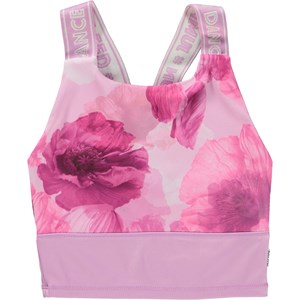 Oliva är en sporttopp med rosa blommor. Toppen har breda rosa axelband med text, medan toppens botten är rosa. Toppen är perfekt under Molo´s sportjackor. Oliva är en del av Molo´s sportkollektion, som är med och binder samman mode och sport. Toppen är skön att ha på och tillverkad i tekniska material, vilket gör att den kan användas både när intensiteten är hög och när man bara vill ta det lugnt. Molo´s sportkollektion är framtagen med en unik high-performance teknologi som heter HeiQ Smart Temp, som understöttar kroppens naturliga kylfunktion. Kylfunktionen aktiveras när du är varm och svettig och deaktiveras när kroppen är nedkyld. HeiQ Smart Temp säkrar optimal komfort och prestanda. Testat oberoende som säkerhet för huden.