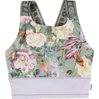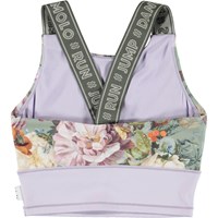 Oliva är en sporttopp i ljusgrön med blommor. Toppen har breda axelband med Molotext på, medan botten av toppen är ljuslila. Toppen är perfekt under Molo´s sportjackor. Oliva är en del av Molo´s sportkollektion som binder samman mode och sport. Toppen är skön och tillerkad av tekniska material, som gör att den kan användas både när intensiteten är hög och när man bara vill ta det lugnt. Molo´s sportkollektion är framtagen med en unik high-performance teknologi som heter HeiQ Smart Temp, som understöttar kroppens naturliga kylfunktion. Kylfunktionen aktiveras när du är varm och svettig och deaktiveras när kroppen är nedkyld. HeiQ Smart Temp säkrar optimal komfort och prestanda. Testat oberoende som säkerhet för huden.