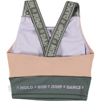 Oliva är en sporttopp i rosa som har breda axelband med Molotext på, medan botten av toppen är grå. Toppen är perfekt under Molo´s sportjackor. Oliva är en del av Molo´s sportkollektion som binder samman mode och sport. Toppen är skön och tillerkad av tekniska material, som gör att den kan användas både när intensiteten är hög och när man bara vill ta det lugnt. Molo´s sportkollektion är framtagen med en unik high-performance teknologi som heter HeiQ Smart Temp, som understöttar kroppens naturliga kylfunktion. Kylfunktionen aktiveras när du är varm och svettig och deaktiveras när kroppen är nedkyld. HeiQ Smart Temp säkrar optimal komfort och prestanda. Testat oberoende som säkerhet för huden.