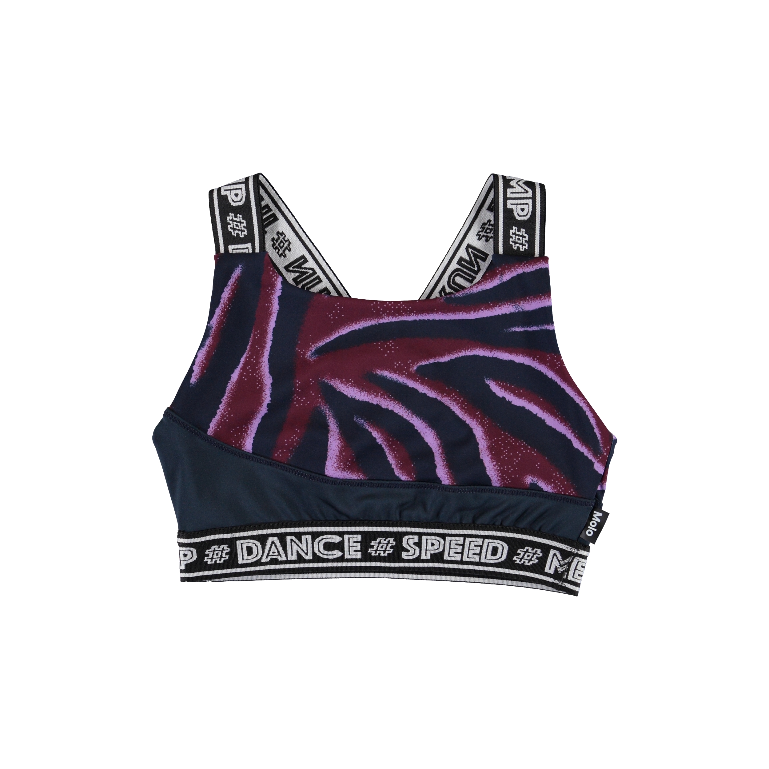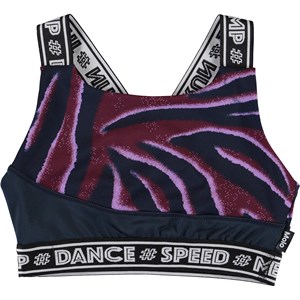 Olivia är en topp med zebraprint, som har breda axelband med text på. Olivia är en del av Molos sportkollektion som har i syfte att föra samman mode och sport. Toppet är komfortabel och är gjord av tekniska material, som gör att den kan användas både när intensitet är hög eller när det bara ska slappas. Molos sportkollektion är tillverkad med en unik högpresterande teknik som heter HeiQ Smart Temp, som stöder kroppens naturliga kylning. Kylfunktionen aktiveras när du är varm och svettig. Kylfunktionen inaktiveras när kroppen har svalnat. HeiQ Smart Temp garanterar optimal komfort och prestanda.