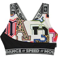 Oliva är kort top med tryck av grafiska bokstäver med svarta detaljer och breda axelband med text tryck. Toppen är perkekt under Molo's sportsjacka. Olivia är en del av Molo's sportskollektion, som kombinerar mode och sport. Toppen är skön och är tillverkad av tekniska material som kan användas både när intensiteten är hög eller bara för att koppla av. Molo’s sportskollektion är tillverkad med en unik högpresterande teknologi som heter HeiQ Smart Temp, som stöder kroppens naturliga avkylning. Kylfunktionen aktiveras när du är varm och svettig. Kylfunktionen inaktiveras när kroppen är avkyld. HeiQ Smart Temp garanterar optimal komfort och prestanda. Testad oberoende som säkert för huden.