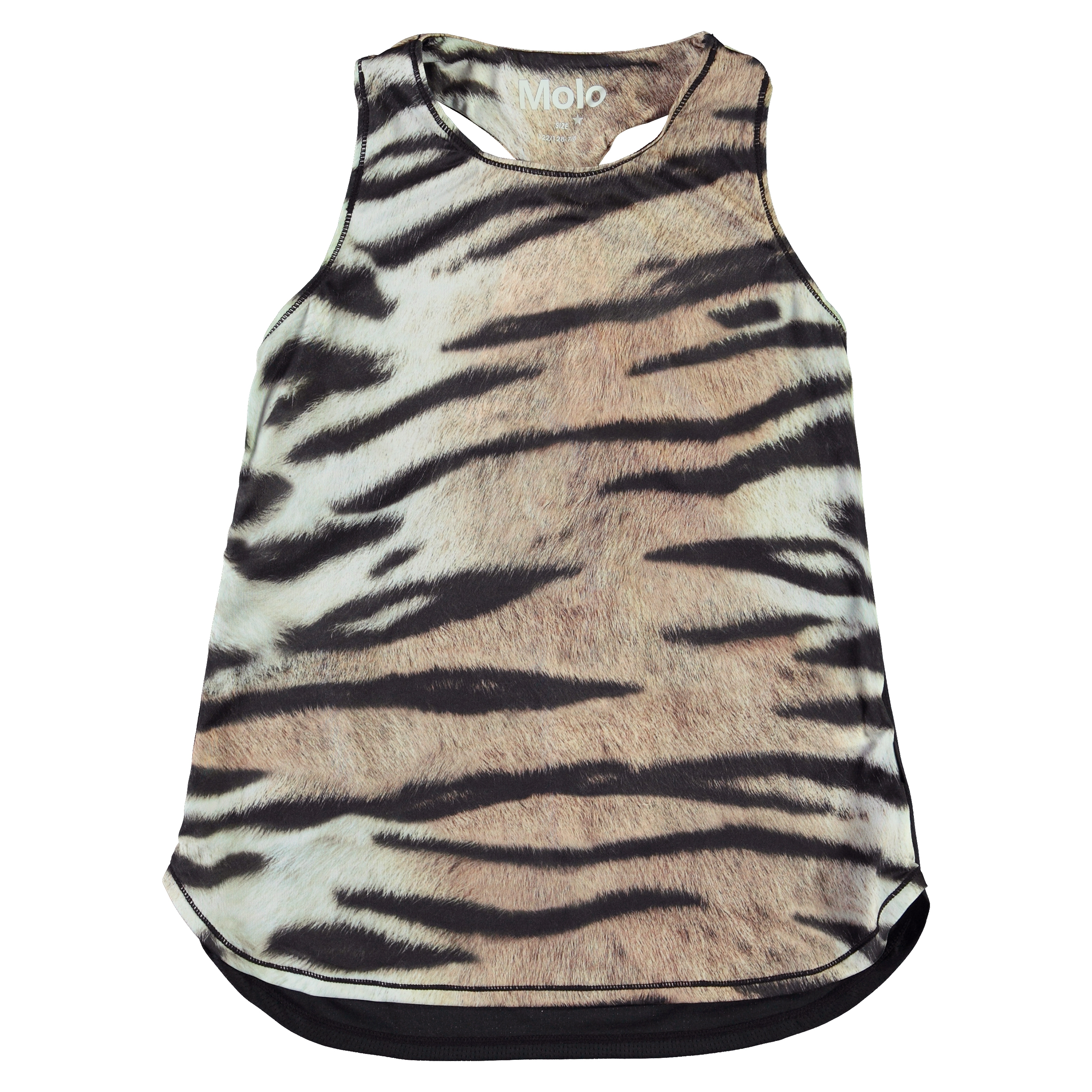 Oriana är en cool sporttopp med tigertryck och en svart baksida. Oriana är en del av Molos sportkollektion som sammankopplar mode och sport. Molos sportkollektion är framställt med en unik högteknologi kallad HeiQ Smart Temp, som stöder kroppens naturliga kylning. Kylfunktionen aktiveras när du är varm och svettig. Kylfunktionen inaktiveras när kroppen har svalnat. HeiQ Smart Temp garanterar optimal komfort och prestanda. Testat självständigt som säkert för huden.