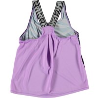 Oriana är en topp med zebraprint och lila baksida, samt axelband med text på. Oriana är en del av Molos sportkollektion som har i syfte att föra samman mode och sport. Toppen är komfortabel och är gjord av tekniska material, som gör att den kan användas både när intensitet är hög eller när det bara ska slappas. Molos sportkollektion är tillverkad med en unik högpresterande teknik som heter HeiQ Smart Temp, som stöder kroppens naturliga kylning. Kylfunktionen aktiveras när du är varm och svettig. Kylfunktionen inaktiveras när kroppen har svalnat. HeiQ Smart Temp garanterar optimal komfort och prestanda.