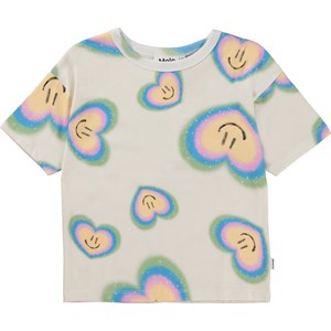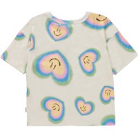 Råvit t-shirt med aurahjärtan. Föreställ dig att allt har en aura - människor, planeter och djur. Här är aurahjärtan som stråler med glädje och kärlek. Aura färger är som färgerna i regnbågen och avspeglar våra känslor i kroppen och vårt inre väsen. Vi är villiga att öppna upp våra hjärtan för alla de saker vi inte kan se och tro på att där är mer mellan himmel och jord. Denna t-shirt är tillverkad i 100% bomull, har en rund hals medd ribbkant, korta ärmar och en normal passform.