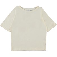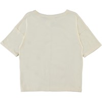 Rabecke är en pärlemorfärgad t-shirt med dropp axlar och en bredare passform.