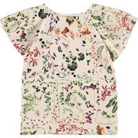 Rachel är en fin t-shirt med breda feminina ärmar och rund hals. Här är den i rosa med vilda blommor och blad.