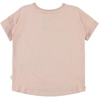 Raeesa är en t-shirt med en oversized passform och ett humoristiskt tryck av en katt med en glasstrut på huvudet. T-shirten har en rosa rygg.