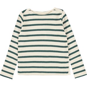 Rafina är en ljus långärmad tröja med gröna ränder.