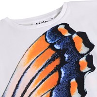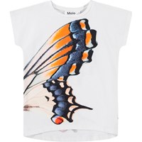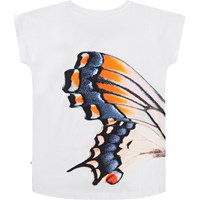 Vit T-shirt i ekologisk bomull. T-shirten har en vanlig passform, korta ärmar, en ribbad halsringning och är längre bak än fram med en fjäril.