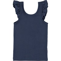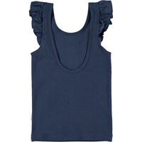 Ranja är ett mörkblått linne med små volanger på axlarna.