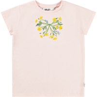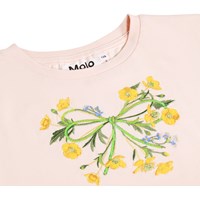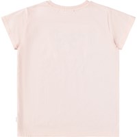 Ljusrosa kortärmad T-shirt i ekologisk bomull med rund hals. T-shirten har en normal passform med paljettbroderi av blommor på framsidan.