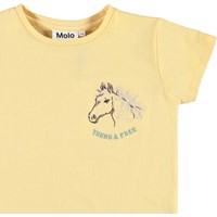 Ranva är en gul t-shirt med en häst på vänster sida och texten "young and free".
