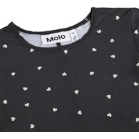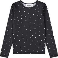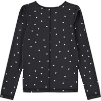 Sportig åtsittande svart topp med rund hals och långa ärmar med små vita hjärtan. Den är perfekt att bära ensam eller under en T-shirt.