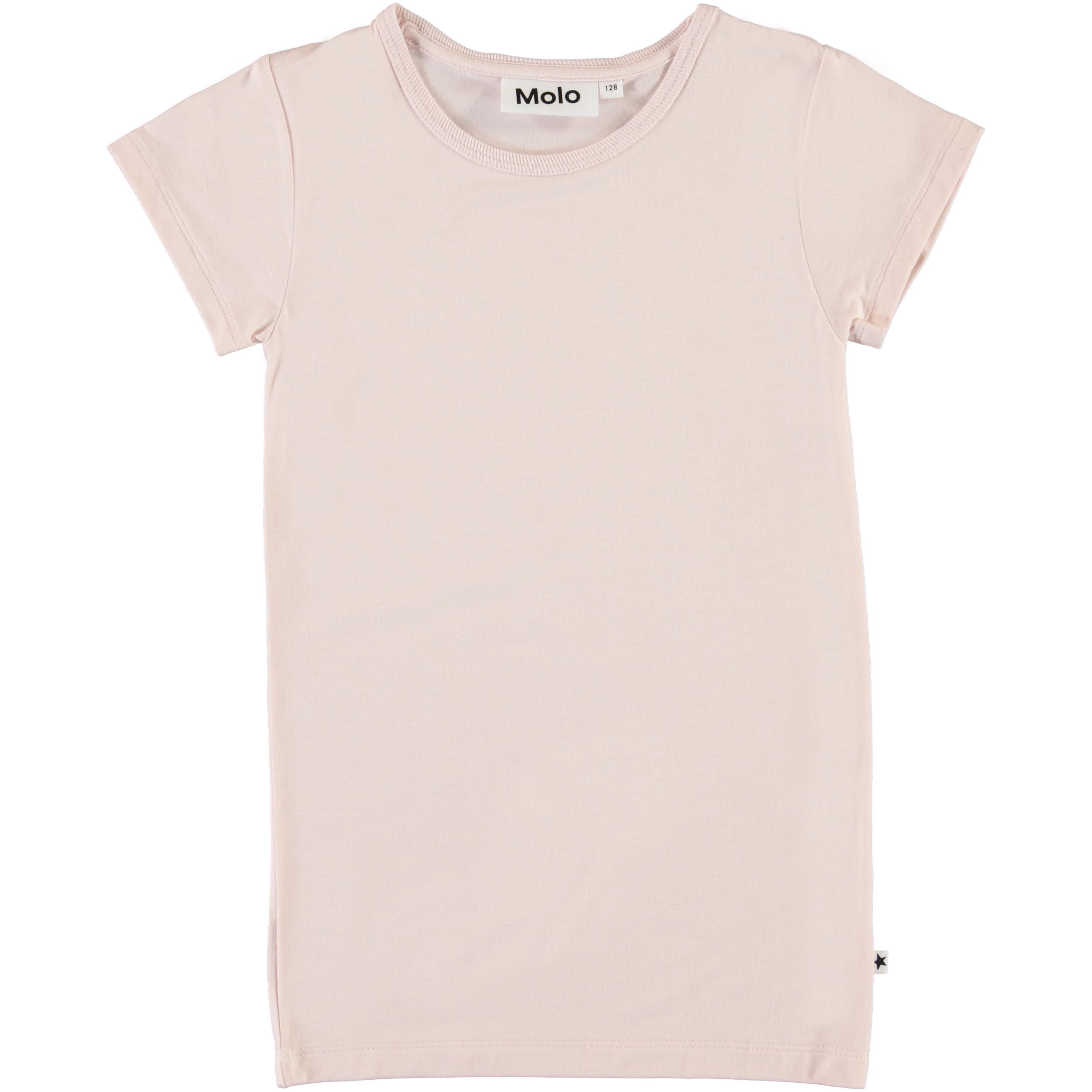 Rasmine är en rosa basictröja med rund hals och korta ärmar.