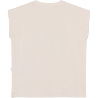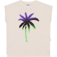 Råvit ärmlös t-shirt i en mjuk bomull. T-shirten har en lös passform, ribbkant vid halsen och slits på båda sidor, samt en palm i fina färger framtill.