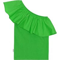 Grön enaxlad topp i ekologisk bomull med stretch. Toppen har en tight passform och en bred poplinvolang upptill.