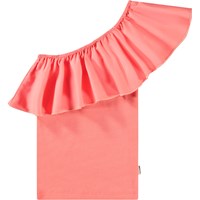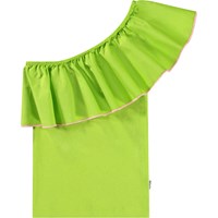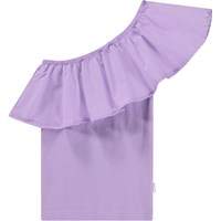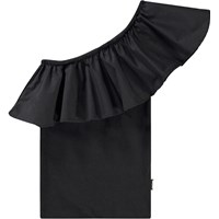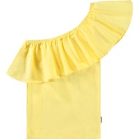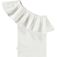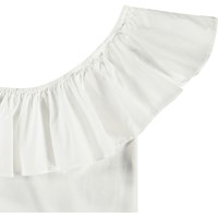 Vit enaxlad topp i ekologisk bomull med stretch. Toppen har en åtsittande silhuett och en bred poplinvolang längs halsringningen.