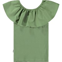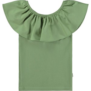 Grön topp med poplinkrage. Kragen är med gummiband och kan bäras off-shoulder eller uppe så den fungerar som både krage och ärm. Denna topp är tillverkad i 100% bomull nertill och 100% bomullspoplin i kragen med en smal passform.