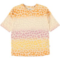 Reen är en t-shirt med leopardmönster i orange och lila.