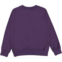 Regine är en lila tröja med tre hästar i olika färger framtill.