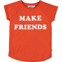 Make Friends' med den röda t-shirten, som har tryckt text fram.