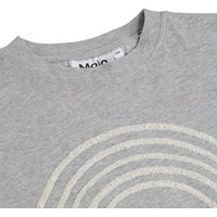 Grå T-shirt i mjuk, ekologisk bomull med rund hals och ribbad kant. T-shirten har en lös passform och ärmar som faller mjukt över axlarna, med ett vitt paljettmönster av en regnbåge och texten Unity på framsidan.