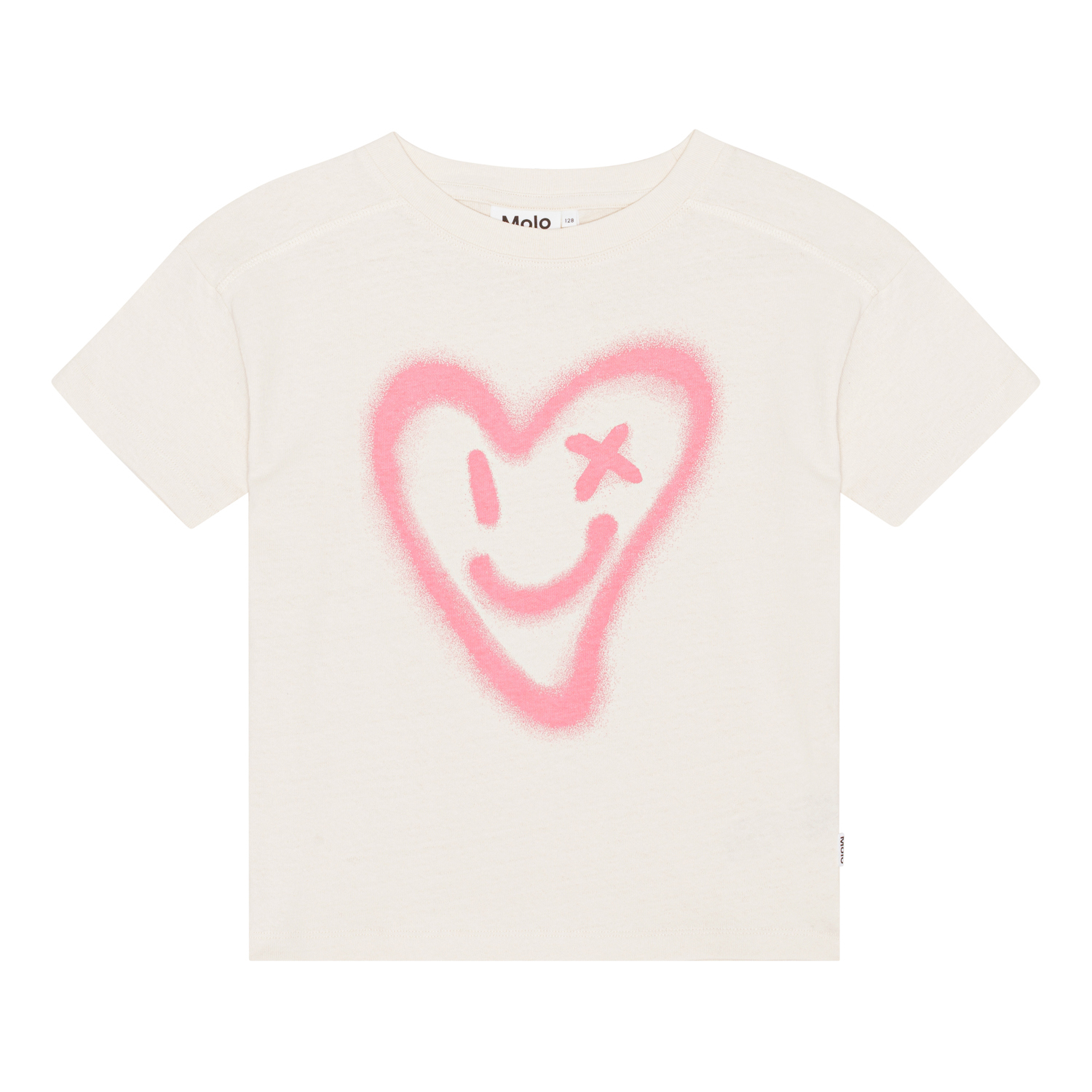 Vit kortärmad t-shirt i 100% ekologisk bomull med graffitimönster i form av ett rosa hjärta. T-shirten har raglanärmar och en normal passform.