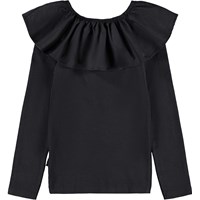 Svart, åtsittande långärmad topp i ekologisk bomullsribb med en poplinkrage och resår som kan bäras off-shoulder eller lyftas upp för att fungera som både krage och ärm.