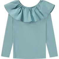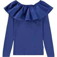 Mörkblå topp med poplinkrage. Kragen är med gummiband och kan bäras off-shoulder eller uppe så den fungerar som både krage och ärm. Denna topp är tillverkad i 100% bomull nertill och 100% bomullspoplin i kragen, har långa ärmar och en smal passform.