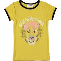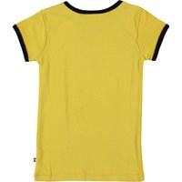 Rhiannon är en t-shirt i gul med svarta kantband och tryck fram.