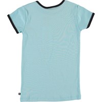 Forever young at heart' är statementet på t-shirten Rhiannon. Så hitta din lekfulla sida och var evigt ung i denna coola t-shirten. T-shirten är en ljusblå ringad t-shirt med svarta kanter vid ärmar och halsringning.