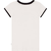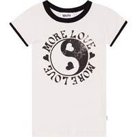 Vit t-shirt i ekologisk bomull med tight passform. T-shirten har svarta kantband längs hals och ärmar, samt en stor yin och yang symbol med texten "More Love" framtil.