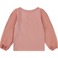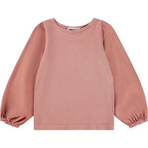 Rosa tröja med puffärmar o bomullspoplin. Denna tröja är tillverkad i 100% bomull, har långa ärmar med puff och gummiband längst ut, rund hals med ribbkant och en normal passsform.