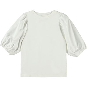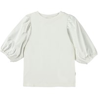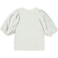 Rica är en vit topp i ekologisk bomull, med puffärmar i poplin. Ärmarna har gummiband längst ut, vilket framhäver puff-effekten.