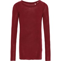 Bordeaux långärmad tröja i merinoull med en tight passform, rund hals och babylock-kanter på ärmarna och nertill på tröjan. Matcha med leggings i samma färg för ett komplett set.