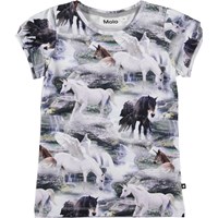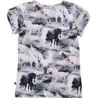 Är det enhörningar som är på Rimona t-shirten? Det är i alla fall inte vanliga hästar, som ses i lila nyanser på t-shirten.