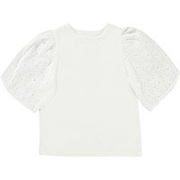Ritza är en vit topp med vacka, korta broderi anglaise ärmar. Ärmarna rynkas uppe på axeln, vilket skapar en elegant puff-effekt. Kombinera med matchande kjol, Brigitte, för en komplett look.