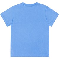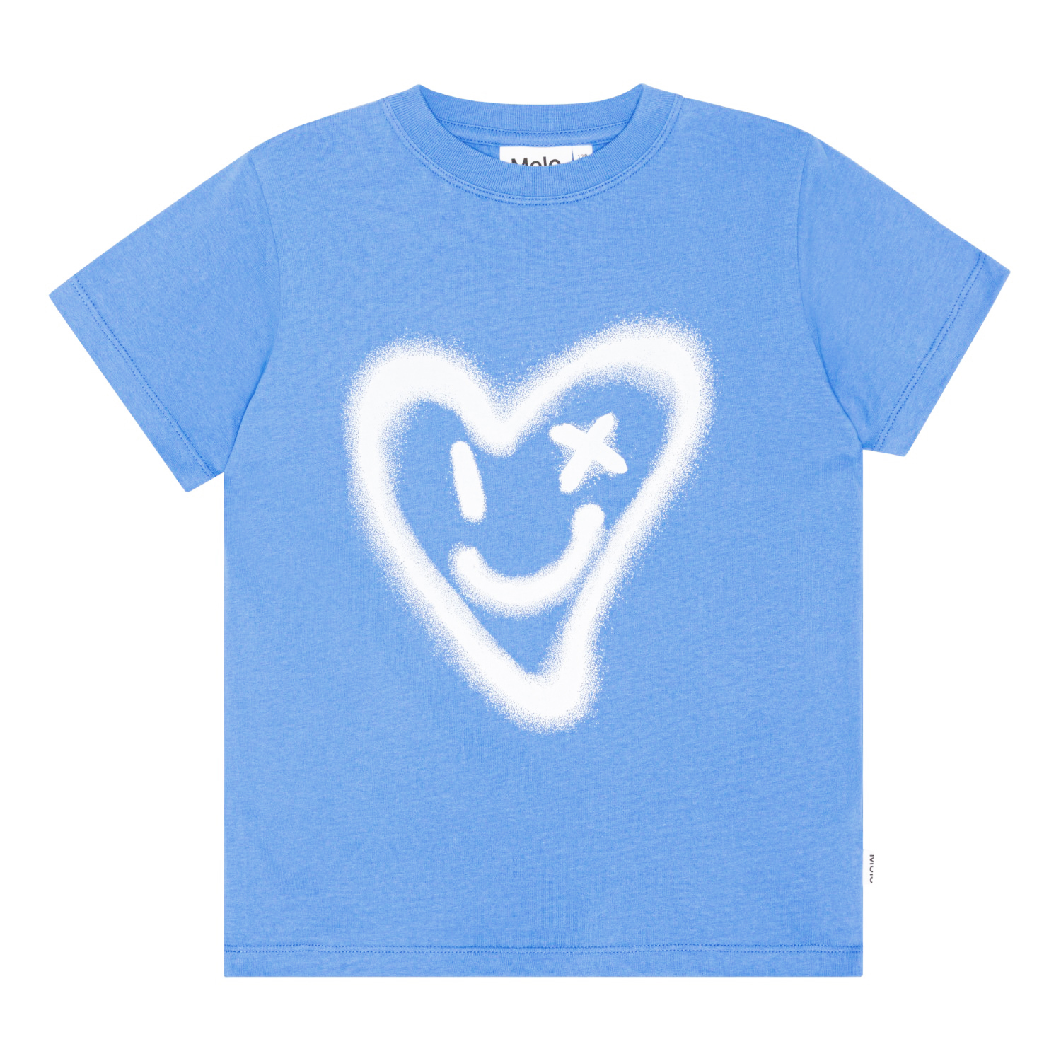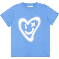 Blå kortärmad t-shirt i ekologisk bomull med graffitimönster av ett vitt hjärta. T-shirten har rund hals och en normal passform.